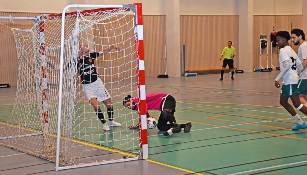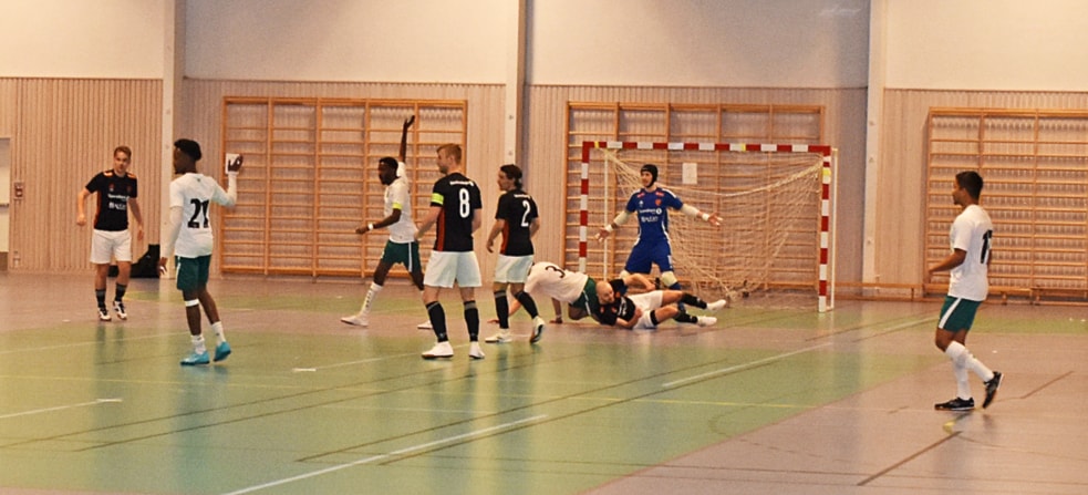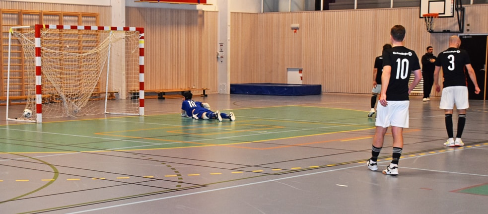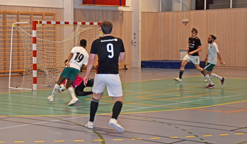Stovner har tatt ut keeperen og spiller med fem utespillere. Det lykkes delvis, mål nummer to for Stovner går inn, men det var ikke nok til å ta igjen Utleiras 2–4-seier